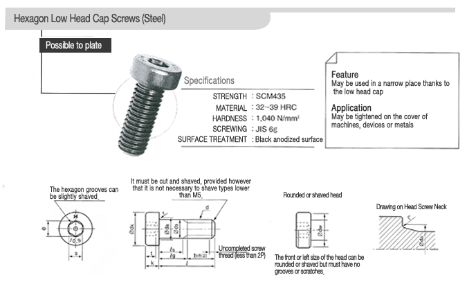 | Hexagon Socket Head Cap Screws | | Hexagon Low Head Cap Screws| | Hexagon Socket Countersunk Head Cap Screws| | Hexagon Socket Set Screws| | Hexagon Screws| | |||