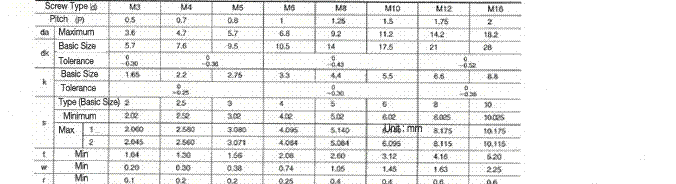 Dimension/Size of Hexagon Socket Button Head Screws